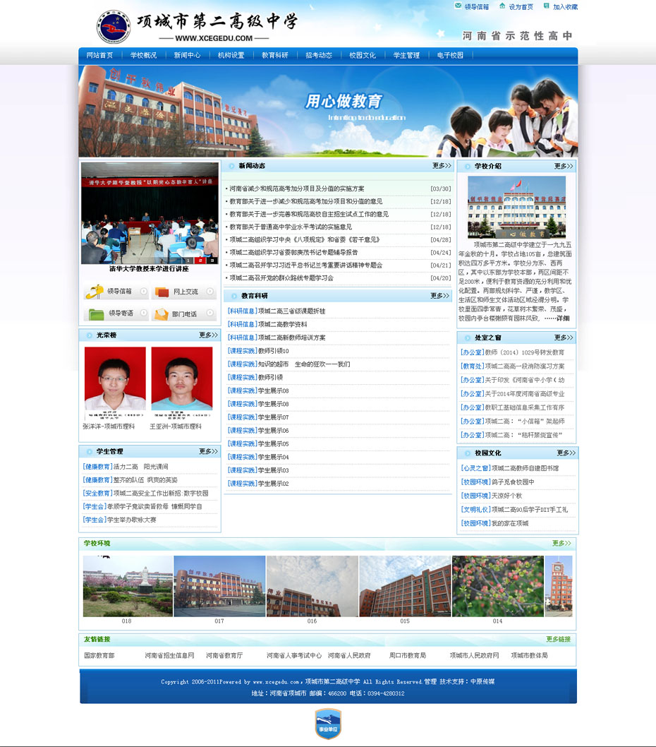 案例介紹:河南省項(xiàng)城市第二高級(jí)中學(xué)始建于1995年,現(xiàn)有72個(gè)教學(xué)班,在校學(xué)生5600多名,教職工416人。其中國家級(jí)骨干教師2人,省級(jí)學(xué)科帶頭人3人,省級(jí)骨干教師15人,特級(jí)教師3人,高級(jí)教師76人,一級(jí)教師112人,碩士研究生28人,在職研究生63人。